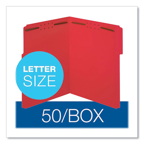 Folders w/Fastners, 11pt, 1/3 Cut, Ltr, 50/BX, Red