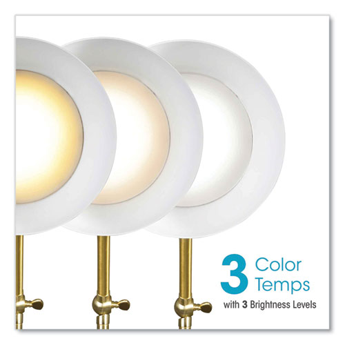 With bold brushed brass accents and matte black finish, the Adapt LED Desk Lamp makes being stylish a healthy decision. That's because this lamp features OttLite ClearSun LED technology - proven to reduce eyestrain by up to 51%. This exclusive LED comes as close to the sun's spectral output as you can get, helping you see details with incredible clarity and comfort. You can also select from two other color temperatures and three brightness levels with the touch sensitive button. The lamp also offers two locking joints to direct illumination and a USB port to fully charge your devices.