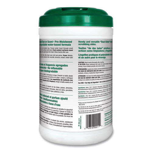 - Durable, dual-sided wipes feature a scouring side for tough scrubbing and a non-abrasive side for shining.